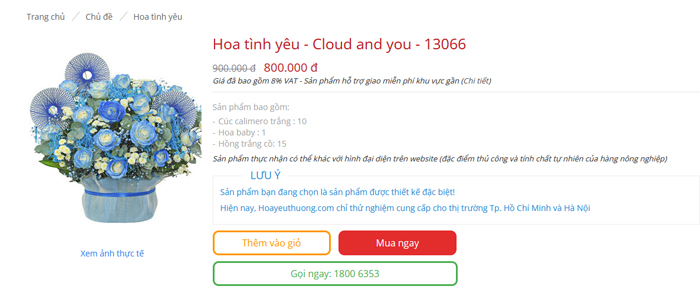 1. Truy cập trang web Hoayeuthuong.com của công ty Cổ Phần Color Life: Cách thức rất đơn giản, bạn chỉ cần truy cập vào đường link: hoayeuthuong.com, xem các sản phẩm hoa mà họ cung cấp. Sau khi chọn lựa được sản phẩm, hãy nhấn vào nút mua ngay.