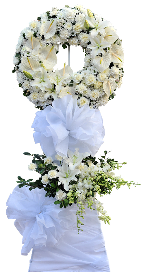 a. Đối với người theo Đạo Phật: Thường sẽ chọn vòng hoa theo dạng hình tròn vì nó tương trưng cho vòng luân hồi của con người. Ngoài ra, mình có thể chọn những kệ hoa dạng đứng và theo tone màu trắng, trắng vàng, trắng tím phù hợp tuỳ vào lứa tuổi. Lưu ý không dùng các kệ hoa có hình dạng của các đạo khác.