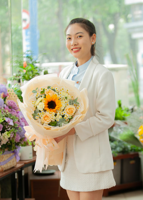Hoa tặng cho giáo viên, bạn nên cân nhắc lựa chọn các tông màu tươi sáng như cam, vàng,... và các loại hoa mang ý nghĩa chúc mừng như hướng dương, đồng tiền, cát tường,....
