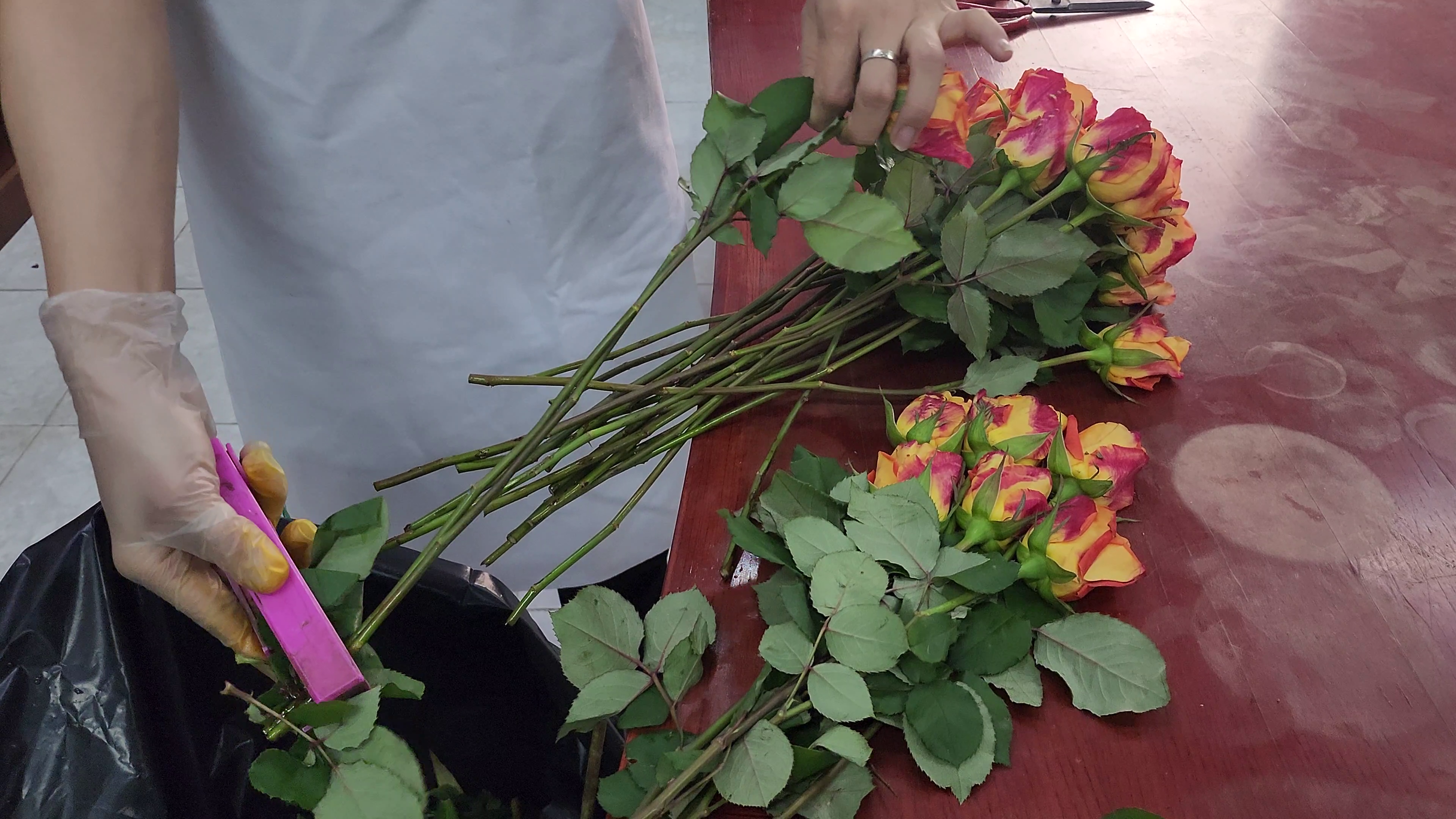 Ngay khi nhận được hoa, hãy cắt vát gốc khoảng 2-3cm dưới vòi nước chảy và loại bỏ hết lá nằm dưới mực nước trong bình. Chọn một bình hoa sạch sẽ và đổ nước sạch vào, có thể pha thêm gói dưỡng hoa hoặc dung dịch tự chế từ đường, thuốc tẩy/aspirin, hoặc giấm táo. Điều quan trọng là phải thay nước hàng ngày hoặc cách ngày, đồng thời rửa sạch bình và cắt lại gốc hoa mỗi lần thay nước.
