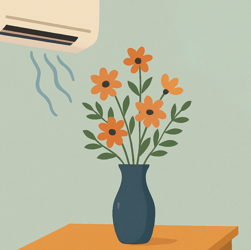 Máy lạnh tạo ra luồng gió lạnh khô – điều này tưởng như vô hại, nhưng lại là "kẻ thù thầm lặng" của hoa tươi.