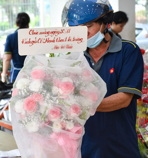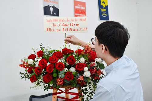 bao gồm thiệp ghi lời chúc, banner in, túi đựng hoa, vải vân long bảo vệ mặt hoa khi di chuyển xa,…