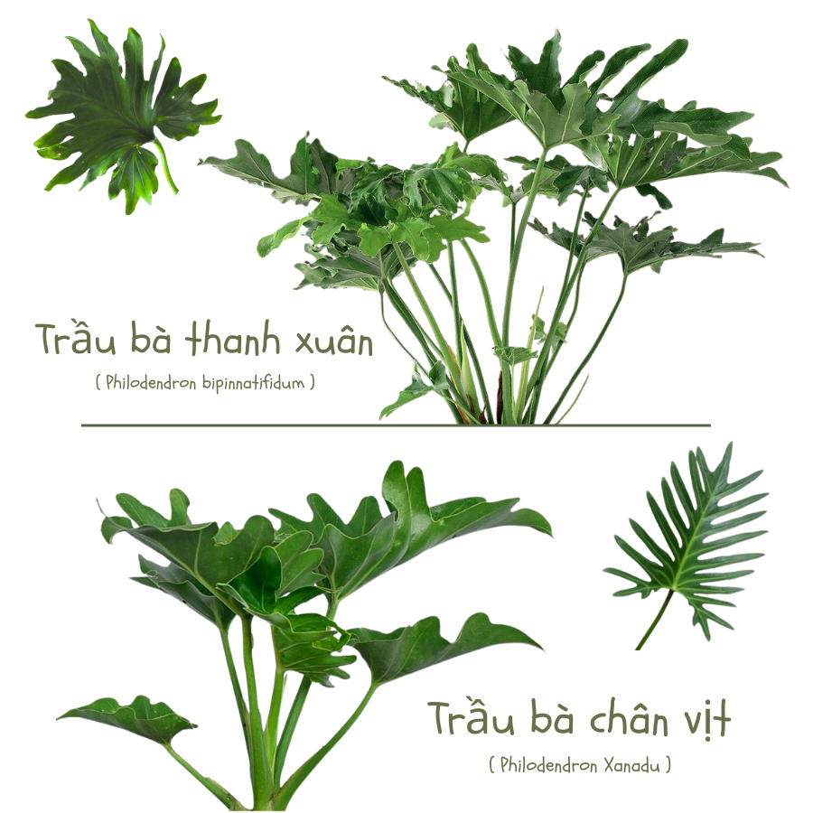 Nếu chỉ nhìn thoáng qua, nhiều người dễ nhầm lẫn giữa Trầu bà chân vịt (Philodendron xanadu) và Trầu bà thanh xuân (Philodendron bipinnatifidum). Tuy nhiên, hai loài này có những điểm khác biệt rất rõ ràng, đặc biệt ở hình thái lá, kích thước, tốc độ sinh trưởng và ứng dụng trang trí.