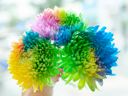 Những bông hoa được nhuộm màu xanh biếc, tím hay cầu vồng luôn có sức hút khó cưỡng. Chúng mang đến làn gió mới, đầy sáng tạo cho cắm hoa và không gian sống.