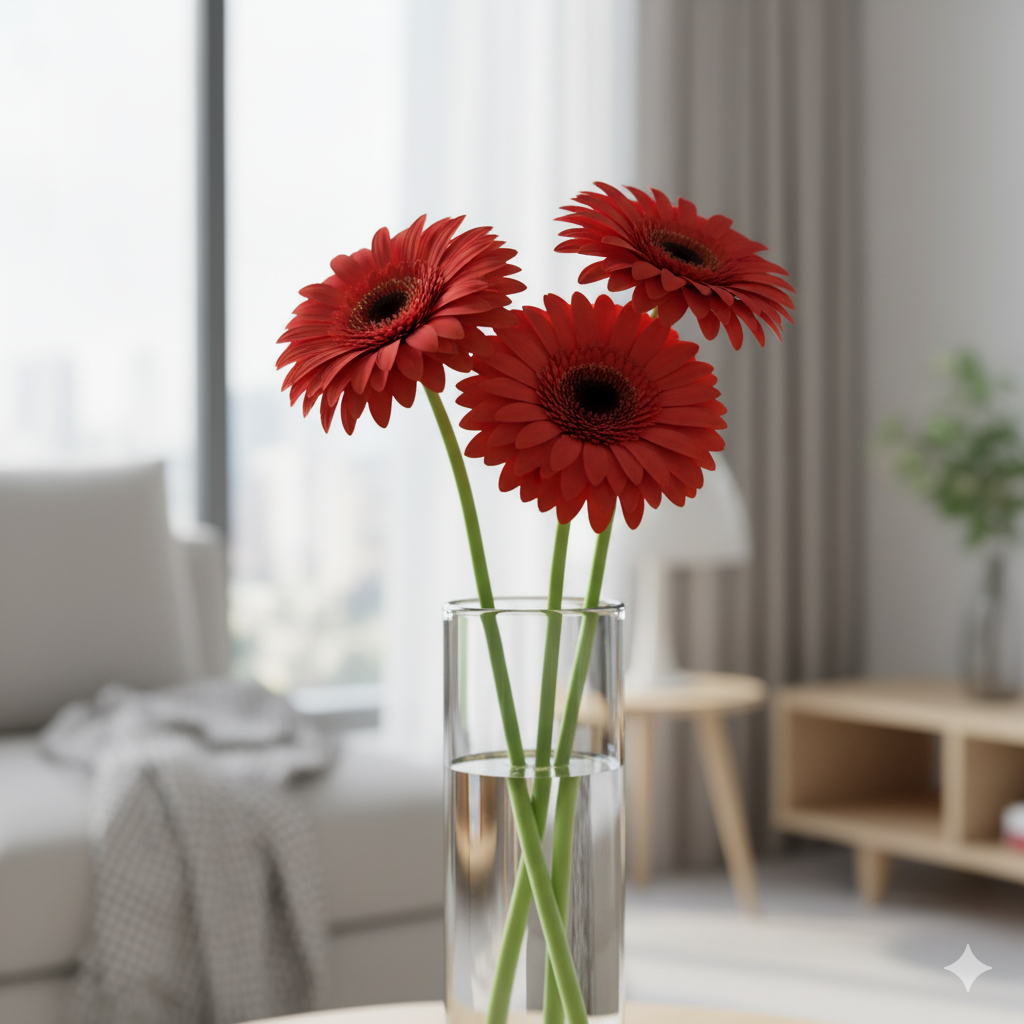 Chỉ cắm từ 1 đến 3 cành cúc đại đóa duy nhất vào bình thủy tinh cao cổ. Sự đơn giản có chủ đích này sẽ tôn lên vẻ đẹp tinh khiết và thanh tao của hoa, phù hợp với không gian hiện đại.