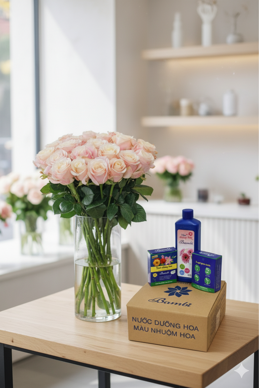 Bambii là thương hiệu thuốc dưỡng hoa được nghiên cứu kỹ lưỡng, đặc biệt phù hợp với khí hậu và các giống hoa phổ biến tại Việt Nam. Sản phẩm sở hữu nhiều ưu điểm nổi bật như công thức cân bằng, cung cấp đủ dinh dưỡng và bảo vệ hoa tối ưu. Sản phẩm rất dễ sử dụng, chỉ cần pha với nước sạch theo đúng tỷ lệ hướng dẫn. Với Bambii, hoa không chỉ nở bung đẹp mà còn giữ được độ tươi lâu từ 7 đến 15 ngày tùy theo từng loại hoa.