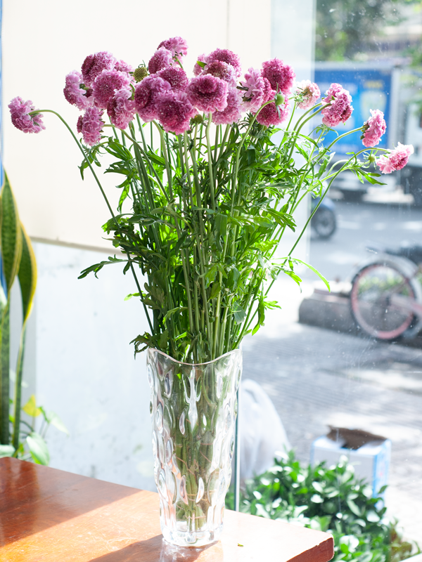 Vẻ đẹp rất "thơ": Scabiosa có thân mảnh, cong tự nhiên nên khi cắm tạo độ chuyển động rất tốt, giúp bình hoa trông mềm mại, không bị cứng.