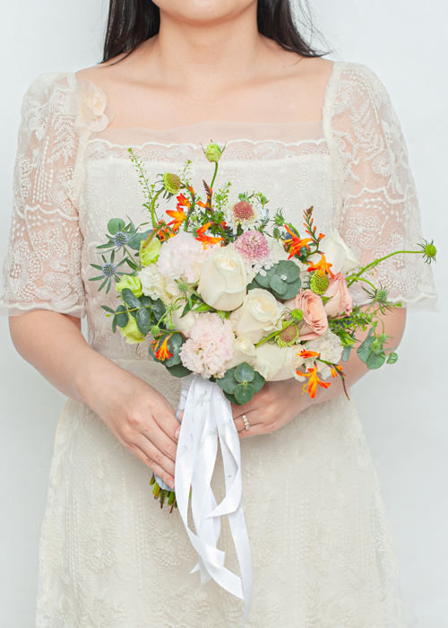 Tạo kết cấu chuyển động: Những đầu hoa tròn và thân hoa mảnh mai giúp tạo ra cảm giác chuyển động nhẹ nhàng, phù hợp với phong cách vườn (garden style) hoặc các sản phẩm bó hoa cưới cần độ bay bổng khi di chuyển.