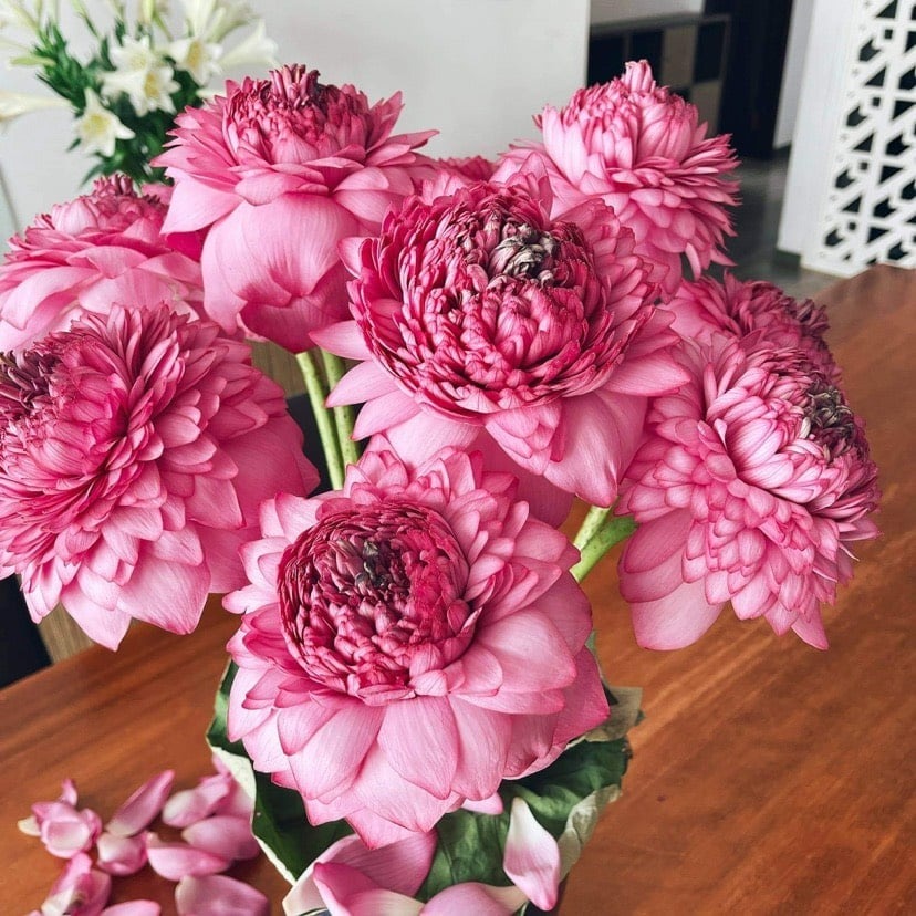 - Mẹo: Vào những ngày nắng nóng, hãy thả vài viên đá lạnh vào nước cắm để giữ nhiệt độ mát, giúp sen lâu tàn hơn.
