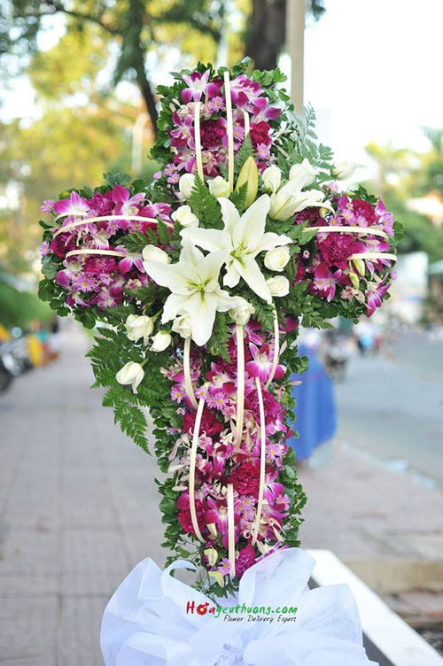 Bên cạnh đó, bạn cũng cần lưu ý việc chọn lựa các loại hoa mang ý nghĩa đặc biệt với người theo đạo Công Giáo. Theo truyền thuyết, Lily là loài đã hoa bao bọc trên mộ của Đức Mẹ Maria nên nó tượng trưng cho sự trong trắng, thuần khiết và là ánh sáng bên trong tâm hồn mỗi con người. Tương tự vậy, hoa cẩm chướng hồng cũng là loài hoa được sinh ra từ những giọt nước mắt của Đức Mẹ nên nó mang một ý nghĩa vô cùng to lớn. Ngoài ra, người ta vẫn thường sử dụng thêm hoa cúc hay hoa lan trắng như biểu thị cho sự cảm thông và lời tiễn đưa đầy yêu thương gửi đến người vừa qua đời.