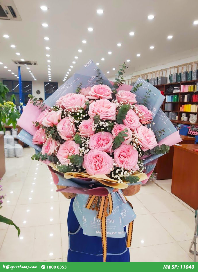 Bó hoa gồm có: 20 Pink OHara, 2 Hoa baby, 3 Lá bạc