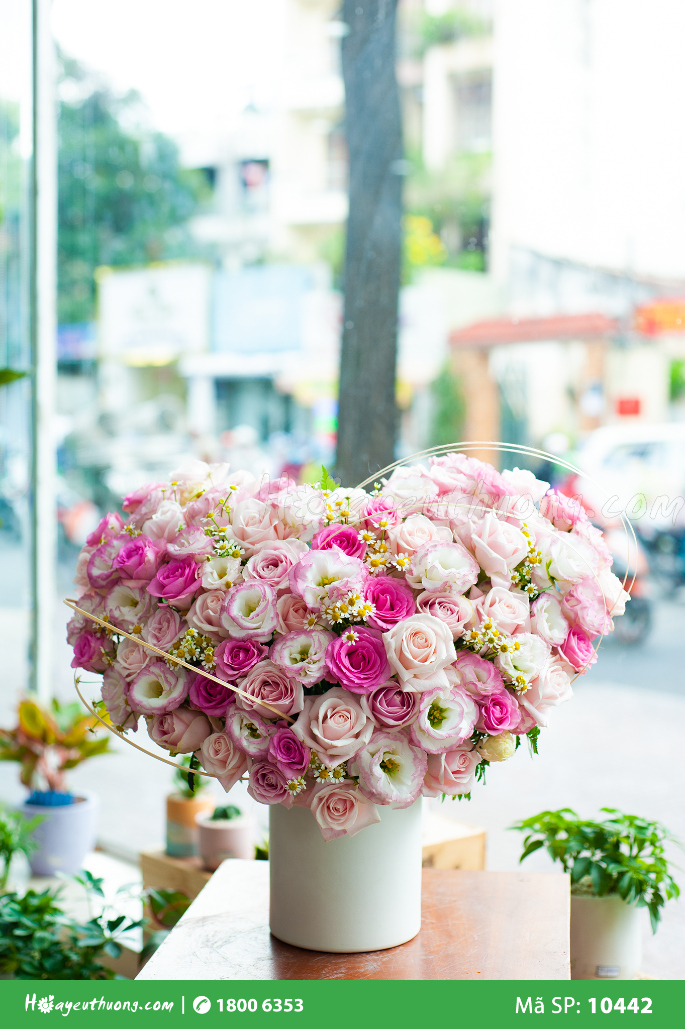 Đơn giản với tông hồng ngọt ngào, bó hoa “Tình” là thông điệp yêu thương tràn đầy hạnh phúc và lãng mạn dành cho các cặp đôi.