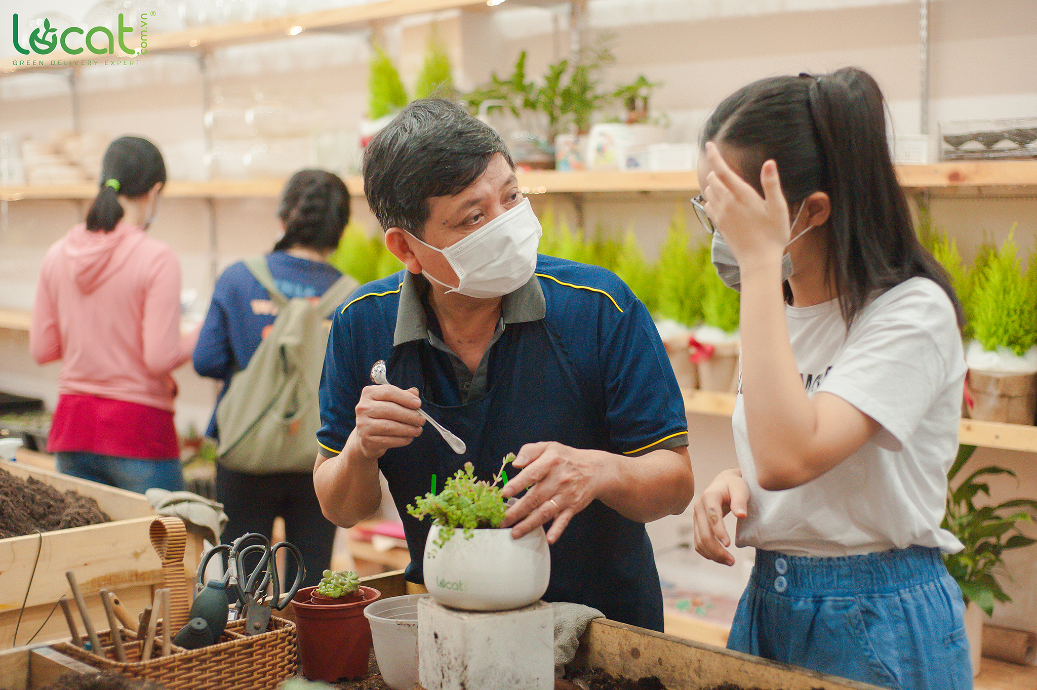 Đồng thời đến với chương trình, bạn cũng có thể trải nghiệm hoạt động trồng cây và hướng dẫn chăm sóc cây do các nhân viên của cửa hàng cây xanh Lọ Cát hướng dẫn.