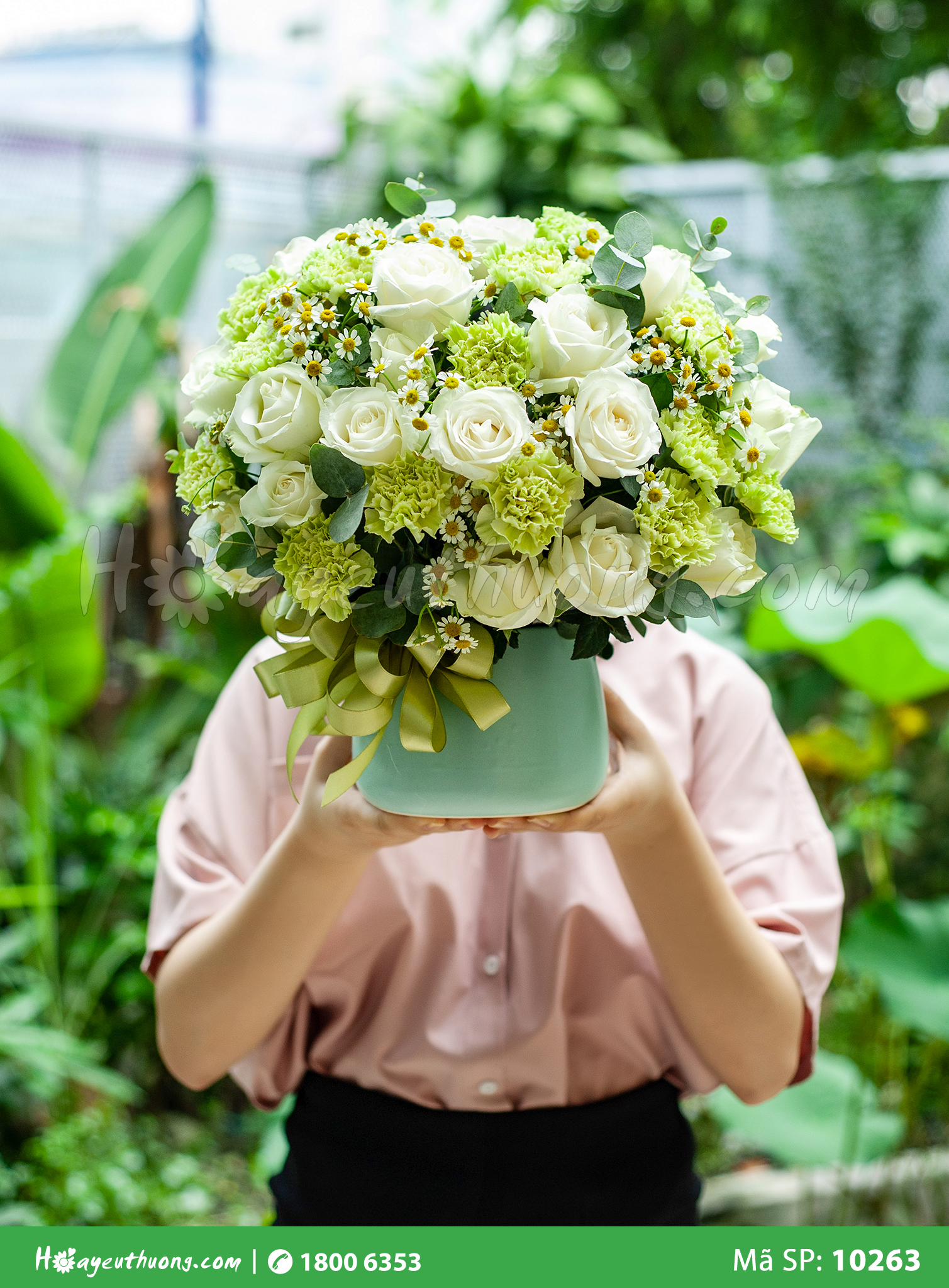 Chọn một bó hoa tươi vui và thêm một chiếc bình để họ có mọi thứ cần thiết để thưởng thức những bông hoa tươi đẹp lâu hơn.