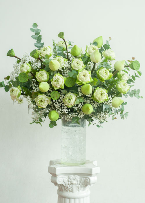 Bình hoa sen: Bình hoa sen là món quà tặng tinh tế, thường được dùng để chưng bày trên bàn gia tiên, trang trí vào những dịp quan trọng. Ngoài ra hoa sen trắng cắm bình cũng là một trong những lựa chọn tốt để làm hoa chia buồn vì màu sắc và ý nghĩa trang trọng của hoa