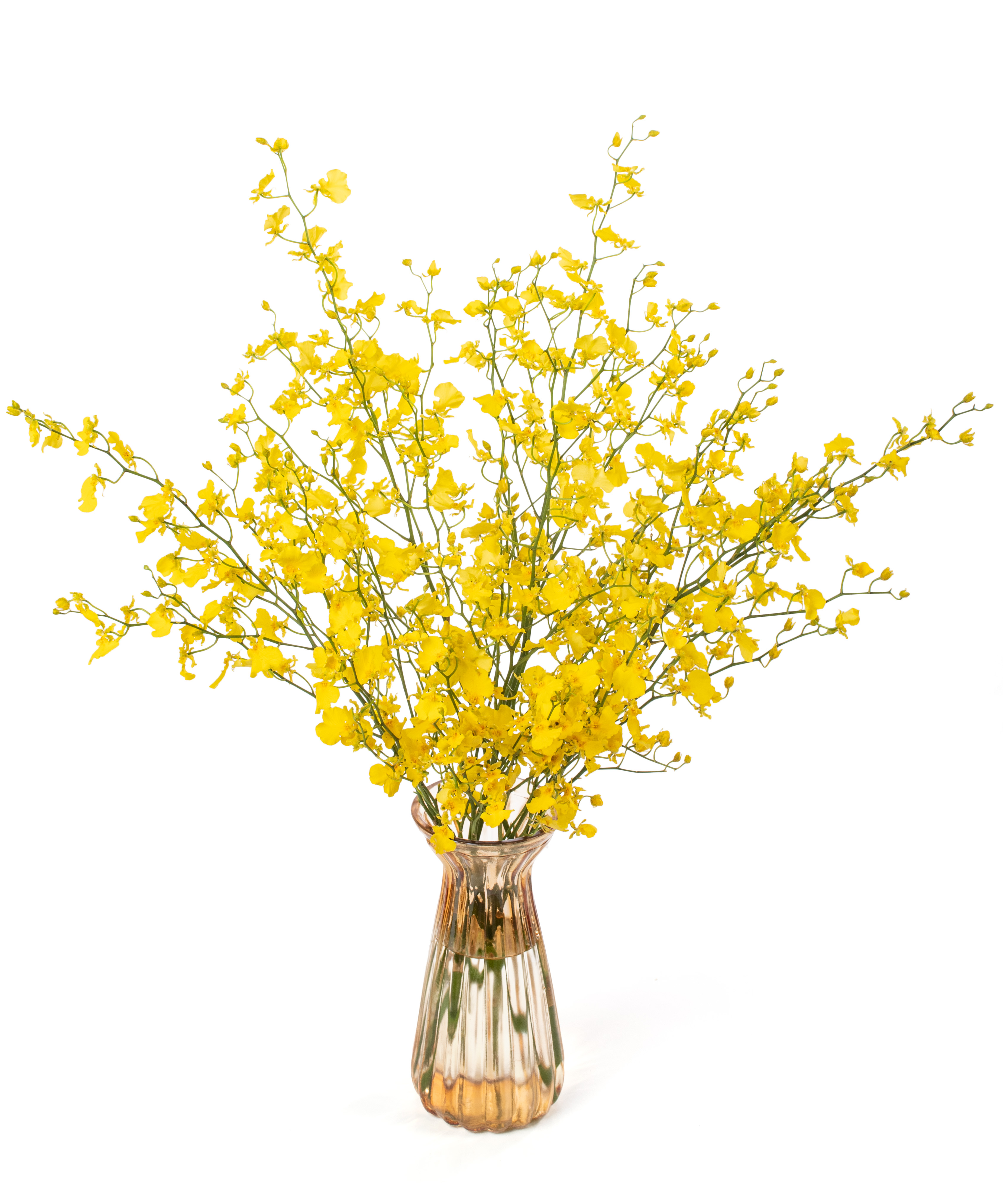 Sắc vàng rực rỡ của hoa lan vũ nữ được xem là biểu tượng của sự giàu sang và thịnh vượng. Việc chưng hoa này trên bàn thờ Thần Tài thể hiện mong muốn thu hút tài lộc và sự phát đạt trong kinh doanh.