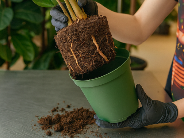 B1: Lấy nhẹ cây ra khỏi chậu cũ, không làm gãy rễ.