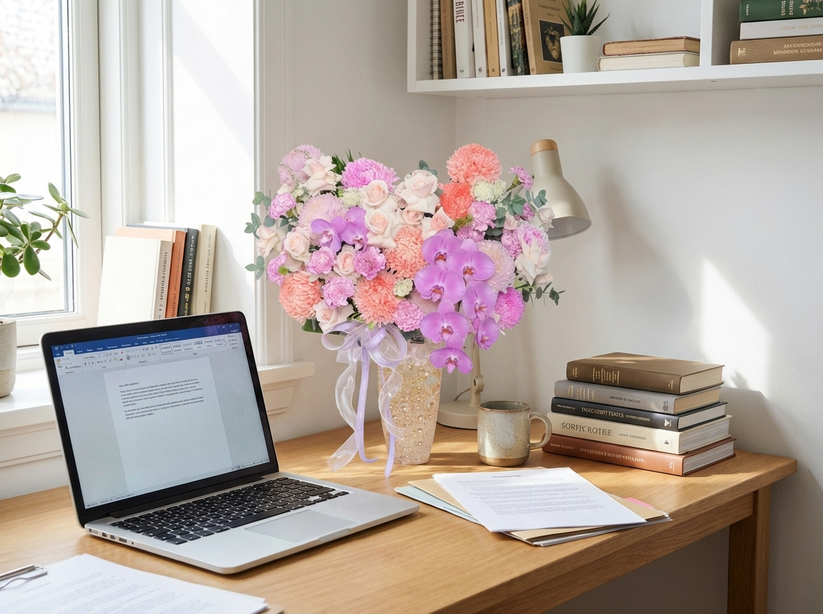 Một bình hoa đẹp sẽ trở nên trọn vẹn hơn với những chi tiết nhỏ đi kèm. Điều quan trọng nhất là lời chúc cá nhân hóa. Đừng chỉ đưa bình hoa một cách đơn thuần. Nếu tặng cho nhiều người trong phòng, bạn có thể tổ chức một buổi trà nhỏ ấm cúng và trao quà tập thể để tăng thêm không khí vui vẻ, gắn kết. Và cuối cùng, bạn có thể kết hợp bình hoa với những món quà nhỏ khác như một hộp socola ngọt ngào, một túi trà thảo mộc thư giãn hay một cuốn sổ xinh xắn để món quà trở nên phong phú và hấp dẫn hơn.