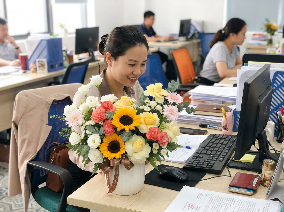 Bài viết này sẽ giúp bạn khám phá sức hút đặc biệt của món quà "2 trong 1" này, từ cách chọn hoa, chọn bình phù hợp với không gian văn phòng, đến những gợi ý cụ thể để bạn có thể tặng một món quà vừa đẹp, vừa ý nghĩa, lại vô cùng thiết thực cho các đồng nghiệp nữ thân yêu.
